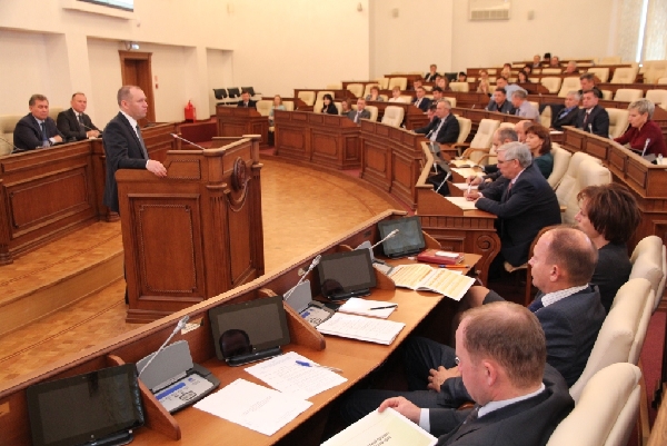 Председатель комитета АКЗС по бюджету и налогам Владимир Устинов ознакомил коллег с порядком рассмотрения законопроекта о краевом бюджете в Алтайском краевом Законодательном Собрании. Заместитель Губернатора Алтайского края, председатель комитета администрации Алтайского края по финансам, налоговой и кредитной политике Владимир Притупов рассказал об условиях формирования главного финансового документа края и основных направлениями бюджетной и налоговой политики на предстоящий период, коротко изложив подходы к формированию расходов бюджета по основным направлениям.