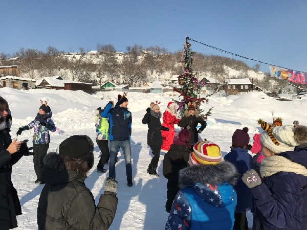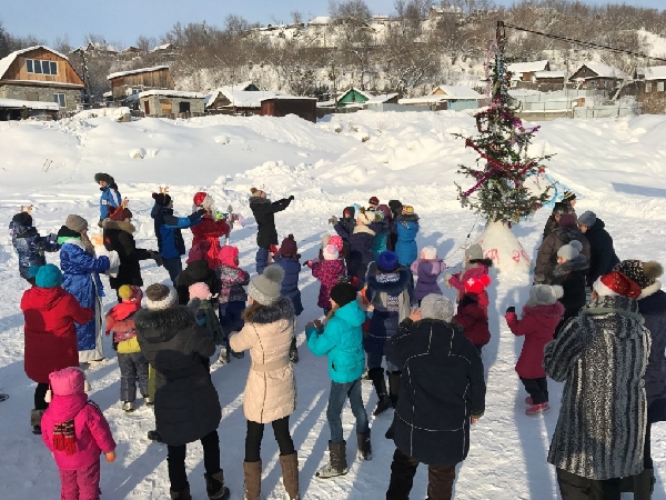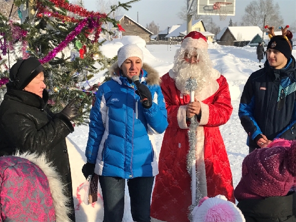 На площадке культурно-спортивного центра в п. Малоугренево, совместно с депутатом Думы города Бийска Людмилой Бузуновой, для проведения праздника была установлена праздничная ель и сделана ледовая горка.