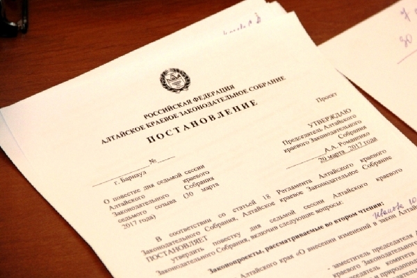 Сегодня в Парламентском центре состоялась 7-я очередная сессия Алтайского краевого Законодательного Собрания. В ходе сессии депутаты рассмотрели 27 вопросов повестки дня. Из них 18 законопроектов и 9 проектов постановлений.