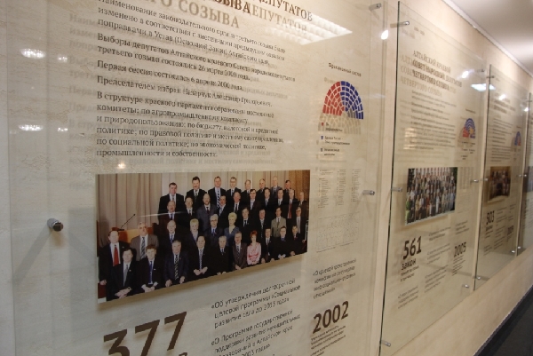 - На выставке в лицах и в цифрах представлена вся история парламентаризма на Алтае - от Колывано-Воскресенской шестигласной Думы, через Алтайский краевой Совет депутатов трудящихся к современному периоду функционирования законодательного органа, - отметил спикер краевого парламента. - Создание такой экспозиции стало возможным благодаря совместной работе большого числа профессионалов: сотрудников аппарата АКЗС, дизайнеров, оформителей, ученых, краеведов, работников архивов,- рассказал Александр Романенко.