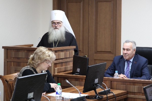 Открыли встречу Митрополит Барнаульский и Алтайский Сергий, заместитель председателя АКЗС - председатель комитета по аграрной политике и природопользованию Сергей Серов и председатель комитета АКЗС по социальной политике Татьяна Ильюченко.