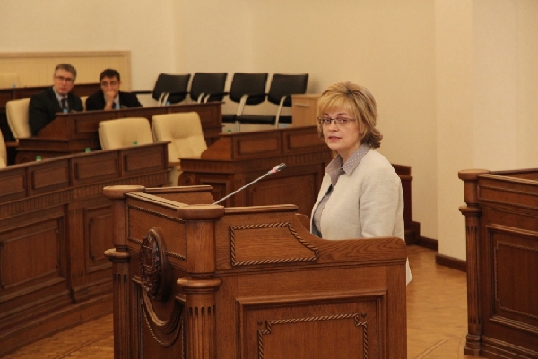 На актуальные вопросы депутатов ответила начальник управления спорта и молодежной политики Алтайского края Елена Лебедева.