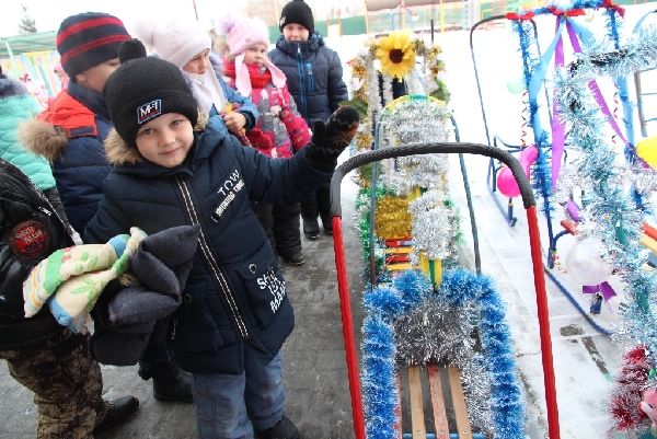 Детский сад «Малинка» на 60 мест, возведенный практически заново на основе прежнего здания в 2013 году, в день визита председателя АКЗС встретил гостей шумным праздником с хороводами и парадом санок в честь Масленицы.