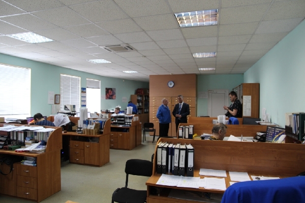 Александр Романенко посетил конструкторское бюро, производственные и строящиеся цеха, склад готовой продукции, столовую и медицинский пункт завода, познакомился с персоналом предприятия, увидел в каких условиях и как изготавливаются сверхточные детали и узлы.