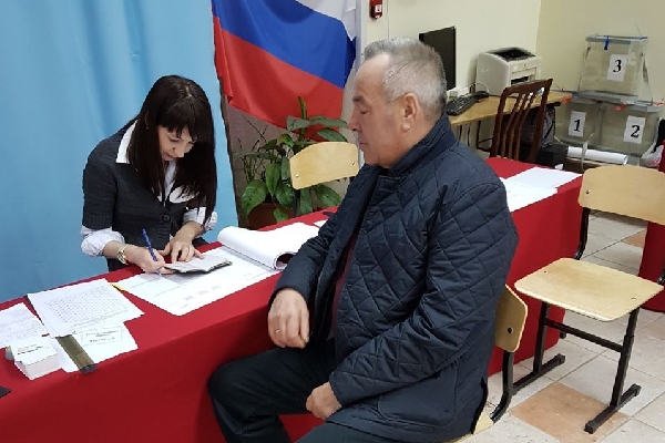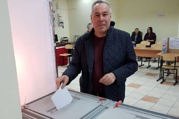 Заместитель председателя АКЗС - председатель комитета по аграрной политике и природопользованию Сергей Серов проголосовал одним из первых на УИК №82 (Индустриальный район).