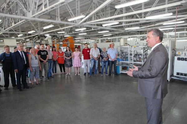 Далее спикер краевого парламента встретился с сотрудниками предприятия. Вместе с Александром Романенко работников «Лакаса-Тэкс» с предстоящим 10 июня профессиональным праздником поздравили врио начальника управления Алтайского края по промышленности и энергетике Владимир Локтюшов, председатель постоянного комитета АКЗС по экономике, промышленности и предпринимательству Альберт Лунев и глава краевого комитета профсоюза текстильной и легкой промышленности Алексей Жуков.