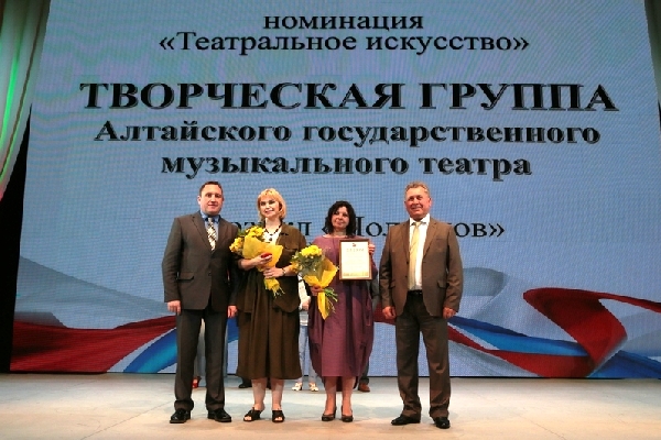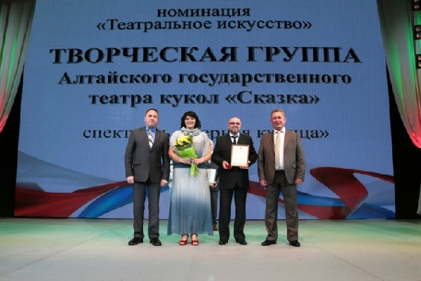 В номинации «Театральное искусство» премией отметили коллективы сразу двух театров. За постановку спектакля «Черная курица» наградили творческую группу Алтайского государственного театра кукол «Сказка», а за постановку мюзикла «Ползунов» - творческую группу Алтайского государственного музыкального театра.