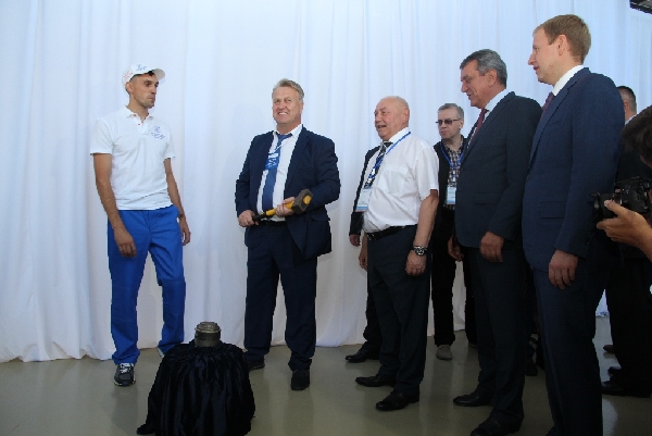 Почетное право дать символический старт работы новой производственной линии выпало первому заместителю генерального директора предприятия «КАМАЗ» Юрию Герасимову, который ударом кувалды отчеканил памятную монету с эмблемой завода.