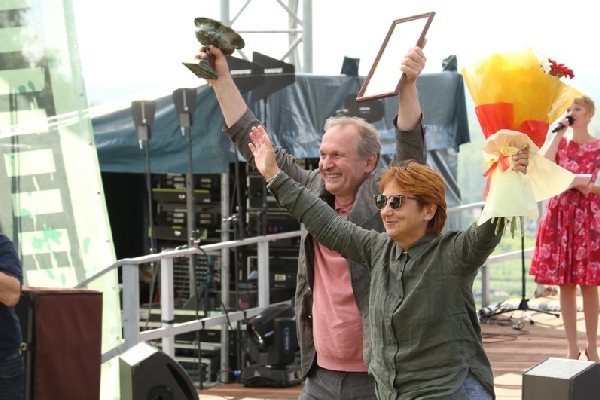 Председатель жюри Шукшинского кинофестиваля Валерий Фомин вручил главную награду фестиваля - вазу из ревневской яшмы колыванских мастеров актрисе Ольге Кожевниковой, которая сыграла одну из ролей и представляла фильм на Шукшинском кинофестивале.