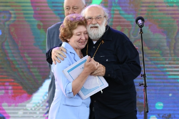 Виктор Томенко и Ольга Ярилова вручили специальный приз за соответствие девизу кинофестиваля «Нравственность есть Правда» народному артисту России Федору Добронравову за фильм «Жили-были».