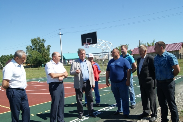 Следующей Александр Романенко посетил многофункциональную спортивную площадку. Ее возведение стало возможным благодаря средствам гранта Губернатора Алтайского края. Инициаторами строительства выступили участники Красногорского районного отделения Российского Союза ветеранов Афганистана. Они собрали необходимый пакет документов и смогли выиграть губернаторский грант в размере 240 тысяч рублей. В рамках проекта было подготовлено и заасфальтировано место для размещения спортплощадки, а затем нанесено бесшовное покрытие из резиновой крошки, сделана разметка, установлены волейбольные стойки, баскетбольные щиты и ворота для мини-футбола. Всего в строительных работах приняли участие более 20 жителей Красногорского района.