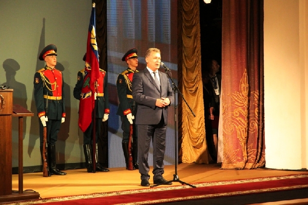 Председатель краевого Законодательного Собрания Александр Романенко в ходе церемонии обратился к Губернатору Алтайского края.