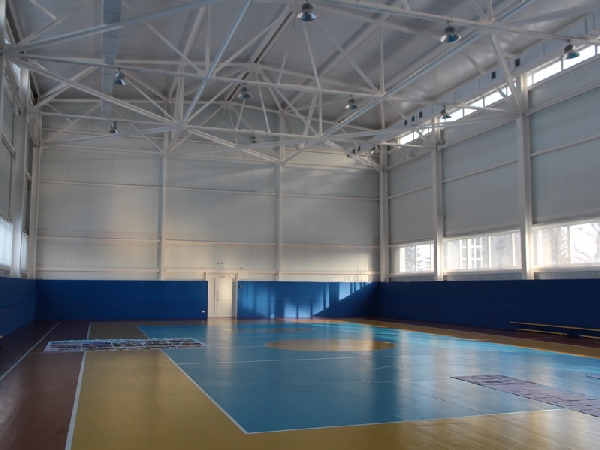 Общая площадь двухэтажного спорткомплекса - почти 1500 кв.м. На первом этаже расположены универсальный спортивный зал, комната отдыха с сауной, гардероб, вспомогательные помещения, пристроена котельная. На втором этаже разместились тренажерный зал, раздевалки, тренерская и медицинский кабинет. Сейчас здесь идут финальные работы - спорткомплекс готовится к открытию в начале следующего года.