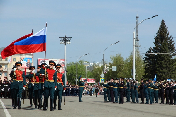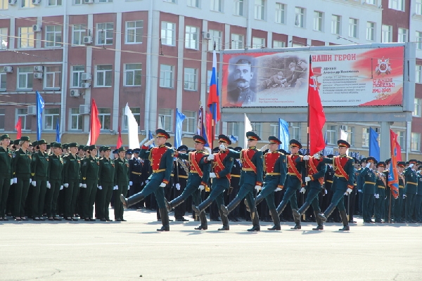 Торжественное построение войск Барнаульского гарнизона, посвященное 74-й годовщине Победы в Великой Отечественной войне, состоялось на площади Советов.