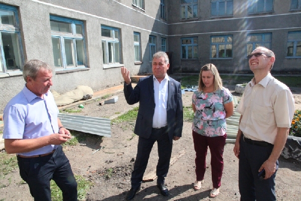 На момент приезда спикера работы на объекте велись лишь частично: рабочие обшивали фасад здания, внутренние работы замерли после замены электропроводки и системы отопления. Оставшаяся часть - замена полов, окон, дверных проемов, отделка стен и др. - по общему мнению вряд ли может быть закончена даже до начала учебного года.