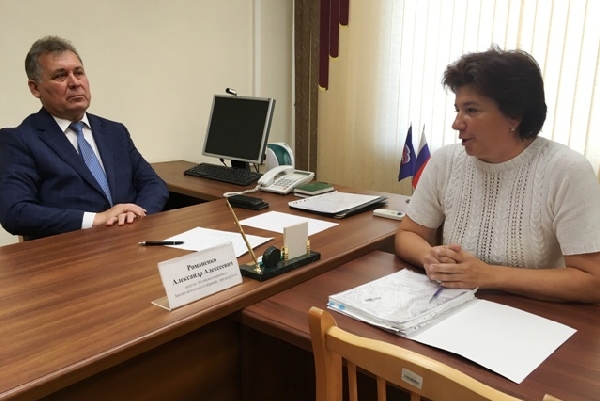 Жительница Барнаула Елена Карнакова на личном приёме председателя Алтайского краевого Законодательного Собрания Александра Романенко обратилась с вопросом по благоустройству двора у её дома в центре города.
