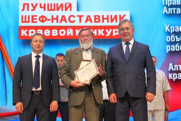 Победителями краевого конкурса «Лучший шеф-наставник» стали шесть жителей региона: начальник участка №5 Бийского олеумного завода Владимир Алпатов, слесарь-инструментальщик Алтайского завода агрегатов Александр Виниченко, начальник цеха очистных сооружений Барнаульского водоканала Виктор Громов, инструктор акционерного общества Алтайского вагоностроения Сергей Кузьмин, наладчик автоматических линий и агрегатных станков алтайского завода прецизионных изделий Юрий Макарьев, мастер участка по ремонту и обслуживанию напорных водоводов Барнаульского водоканала Владимир Сарыгин.