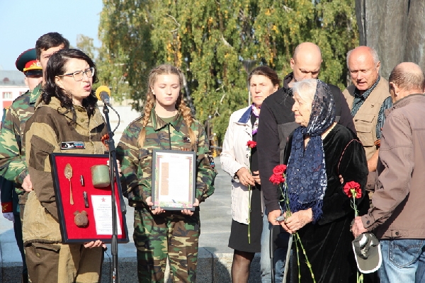 Сегодня, 20 сентября, на Мемориале Славы в Барнауле бойцы поисковых отрядов Алтайского края и Республики Алтай передали родственникам останки трех красноармейцев, погибших в годы Великой Отечественной войны.