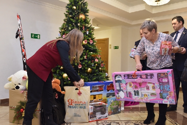 Так, председатель АКЗС Александр Романенко снял с елки два шара - с просьбой про лыжи и про настольную игру «Имаджинариум». Подарки он положил под елку уже с утра. Заместитель председателя АКЗС Сергей Серов принес железную дорогу, депутат Вадим Смагин - большую спортивную машинку и конструктор, Сергей Приб - кукольный домик, Наталья Цепенко - ночник «Звездное небо», Сергей Писарев - куклу-собачку, Мария Прусакова - кинетический песок, Михаил Никишанин - автомобиль-трансформер.