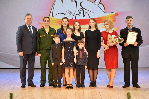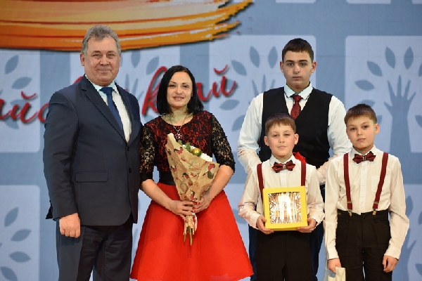Александр Романенко вручил символ «Семья года Алтая» Евгению и Виолетте Белан и наградил победителей этого года - Сергея и Наталью Королевых из Павловского района, воспитавших семерых детей.