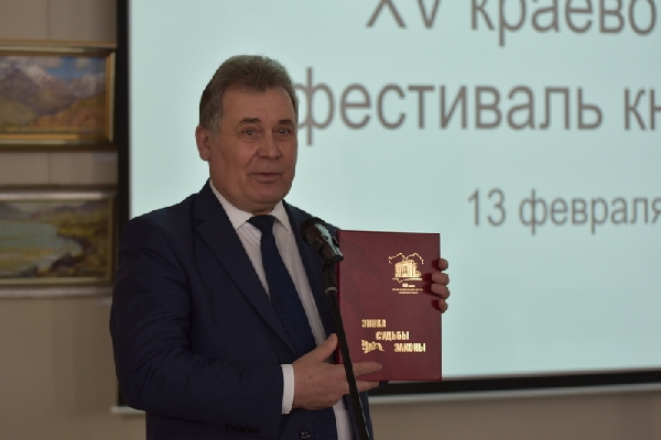 Александр Романенко передал книгу о представительной власти края в фонд фестиваля «Издано на Алтае»