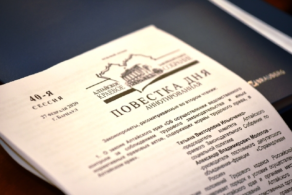 Добавим, что очередная сессия АКЗС состоится 26 марта. Александр Романенко также сообщил, что в период с 10 по 20 марта будет назначена внеочередная сессия краевого парламента, посвященная подготовке отзыва на законопроект о поправках в Конституцию РФ. Кроме того, следующая очередная сессия АКЗС, на которую запланирован отчет Губернатора Алтайского края, по предложению главы региона пройдет 16 апреля.