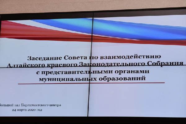 В Парламентском центре 25 марта прошло заседание Совета по взаимодействию Алтайского краевого Законодательного Собрания с представительными органами муниципальных образований. Мероприятие прошло под председательством спикера АКЗС Александра Романенко.