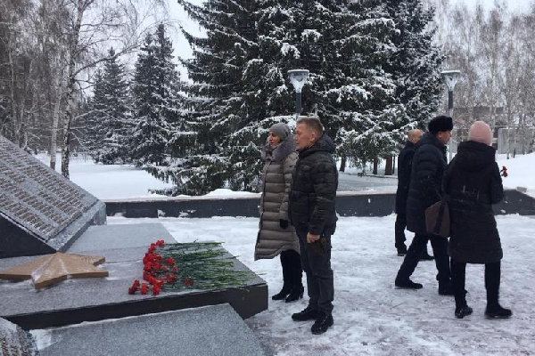 Вместе они возложили цветы и к Мемориалу славы на площади Победы в Барнауле. С этой площади в 1941-1945 годах бойцы Алтайского края уходили на фронт. На плитах Мемориала увековечены фамилии более 13 тысяч солдат, не вернувшихся с войны.