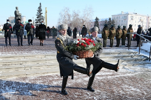 В День защитника Отечества к Мемориалу Славы в Барнауле возложили цветы
