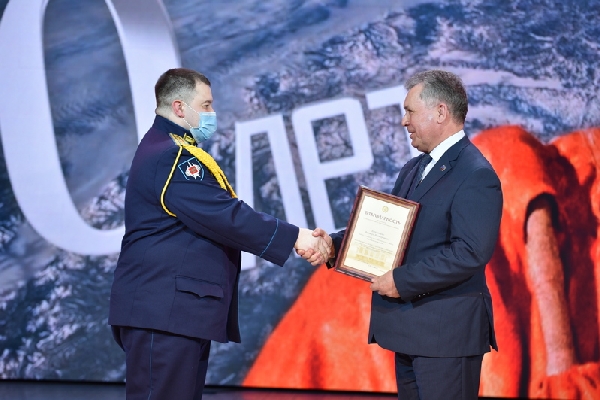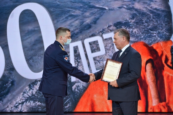 Романенко отметил, что в зале находится ветеран космических войск Петр Ганьжин, который служил на Байконуре в момент запуска первого космического корабля «Восток». Спикер вручил ему Благодарность комитета Государственной Думы по обороне.