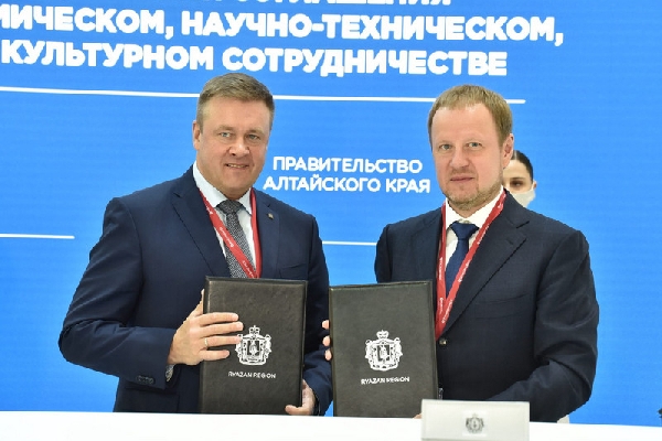 Как сообщает официальный сайт региона, в ходе подписания документа стороны выразили взаимную заинтересованность в развитии двусторонних связей на долгосрочной основе. Правительства Алтайского края и Рязанской области продолжат сотрудничество по широкому кругу вопросов, в том числе в сфере экономики, промышленного производства, привлечения инвестиций.