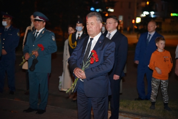 Накануне Дня памяти и скорби, 21 июня в 23:00, Барнаул присоединился к общероссийской акции «Свеча памяти». В ней приняли участие Губернатор Алтайского края Виктор Томенко, председатель АКЗС Александр Романенко, начальник ГУ МВД России по Алтайскому краю Андрей Подолян, начальник УФСБ России по Алтайскому края Юрий Мороз, глава Барнаула Вячеслав Франк, представители органов власти, силовых структур.