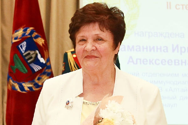 Ирина Алексеевна Каманина - заведующая отделением мониторинга туберкулеза и иммунодиагностики - врач-фтизиатр Алтайского краевого противотуберкулезного диспансера. Родилась в 1939 году.