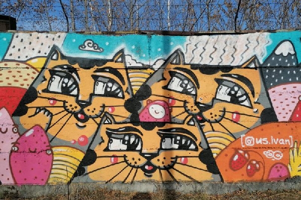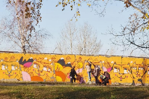 Стометровое граффити с 36-ю котами появилось в парке Льнокомбината в Бийске. Инициаторами проекта стала председатель комитета Алтайского краевого Законодательного Собрания по спорту, культуре и молодежной политике, депутат фракции «Единая Россия» Татьяна Ильюченко, художник Иван Усольцев и местные волонтеры.