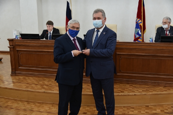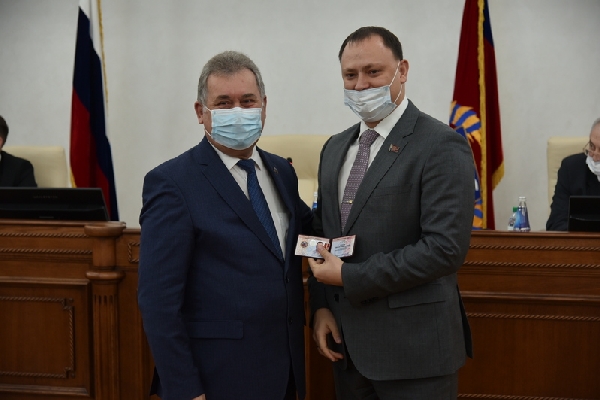 В начале 2-й сессии АКЗС председатель краевого парламента Александр Романенко вручил своим коллегам удостоверения депутата восьмого созыва и депутатские значки.