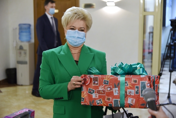 «Очень приятно самой делать подарки другим. Получать радостно, но дарить другим нравится намного больше», - рассказала председатель комитета АКЗС по спорту, культуре и молодежной политике Татьяна Ильюченко. Она положила под елку настольную игру «Имаджинариум».