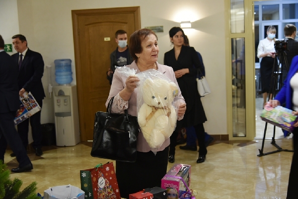 Депутаты ЛДПР пришли положить подарки под елку всей фракцией. Руководитель фракции Владимир Семенов купил по просьбе ребенка игровой набор «Плей до», Ирина Шудра - бублик для катания с горки, Сергей Булаев - косметический набор для девочки, Людмила Цивилева - плюшевого медведя.