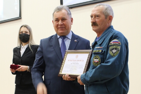 Губернатор Виктор Томенко вручил отличившимся сотрудникам и работникам чрезвычайного ведомства Почетные грамоты Правительства Алтайского края. Почетного звания «Заслуженный работник пожарной охраны Алтайского края», недавно учрежденного в регионе, был удостоен заместитель начальника второго пожарно-спасательного отряда федеральной противопожарной службы Парпыбай Уметов.