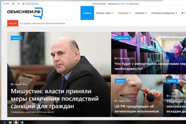 Как отметил заместитель Председателя Правительства, портал «Объясняем.рф» работает с 1 марта. Он также призвал россиян и прибывающих в страну иностранных граждан ориентироваться на публикующуюся на нем информацию и не доверять непроверенным данным.
