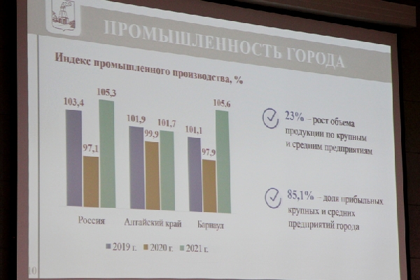Среди важнейших событий минувшего года Вячеслав Франк назвал присвоение Барнаулу почетного звания «Город трудовой доблести». В 2021 году был обновлен и приведен в соответствие с правилами геральдики герб и флаг краевой столицы. Эти вопросы решались при активном участии горожан и общественных организаций.