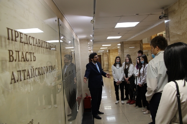 Для барнаульских школьников провели обзорную экскурсия по зданию Парламентского центра. Ребята посетили зал заседаний, где проводятся сессии краевого Законодательного Собрания, узнали о том, как на протяжении последних ста лет в России и в Сибири развивались парламентские институты. Кроме этого, они познакомились с наиболее яркими моментами из жизни Почетных граждан Алтайского края. В финале урока школьники встретились с председателем комитета АКЗС по спорту, культуре и молодежной политике Татьяной Ильюченко.