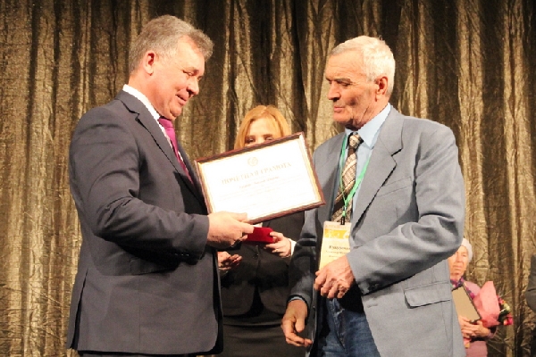 Александр Романенко также вручил ветеранам агропромышленного комплекса Почетные грамоты АКЗС. Награды получили экс-председатель колхоза «Память Ленина» Ребрихинского района Анатолий Борода, бывший глава автохозяйства лесхоза Ключевского района Александр Кукуречко, а также Нина Воросцова, всю жизнь проработавшая в совхозе «Комсомольский» Павловского района, и Дмитрий Четвериков, более 40 лет трудившийся в хозяйствах Заринского района.