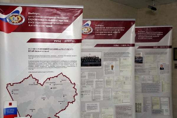 В Парламентском центре открылась выставка, посвященная 25-летию со дня выборов первого созыва Алтайского краевого Законодательного Собрания и 80-летию представительной власти в регионе. В нее включены архивные документы, фотографии, издания, посвященные истории и современности краевого парламента, а также образцы первых гербов края.