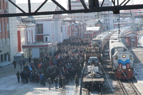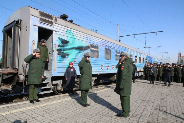 На перроне Барнаульского железнодорожного вокзала эшелон встречали сотни жителей края и Республики Алтай. Открывая торжественный митинг, посвященный этому событию, председатель Алтайского краевого Законодательного Собрания Александр Романенко отметил, что наш регион не понаслышке знает о войне. «На фронты Великой Отечественной ушли более 600 тысяч наших земляков, и 283 тысячи из них не вернулись. Каждой семье известна боль утраты. К сожалению, сейчас мы становимся свидетелями развития новой глобальной угрозы, которой является международный терроризм. Алтайский край не может и не должен оставаться в стороне. На сирийской земле погиб наш земляк Олег Анатольевич Пешков», - сказал спикер АКЗС.