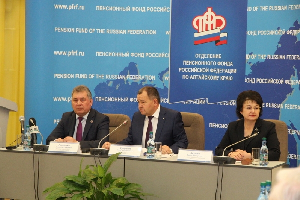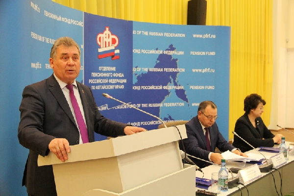 Сегодня, 19 марта, в Барнауле прошло итоговое совещание регионального отделения Пенсионного фонда России. Участие в обсуждении результатов работы отделения ПФР по Алтайскому краю в 2018 году и определении задач на 2019 год принял председатель краевого Законодательного Собрания Александр Романенко.