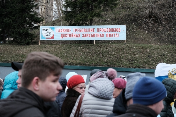 По данным организаторов, в митинге приняли участие до 1500 человек. Среди них - члены организаций, входящих в Федерацию независимых профсоюзов России, студенты, представители политических партий («Единой России» и ЛДПР). Перед митингом участники акции прошли в шествии от Дома союзов по проспекту Ленина до площади Сахарова, где и состоялось мероприятие.