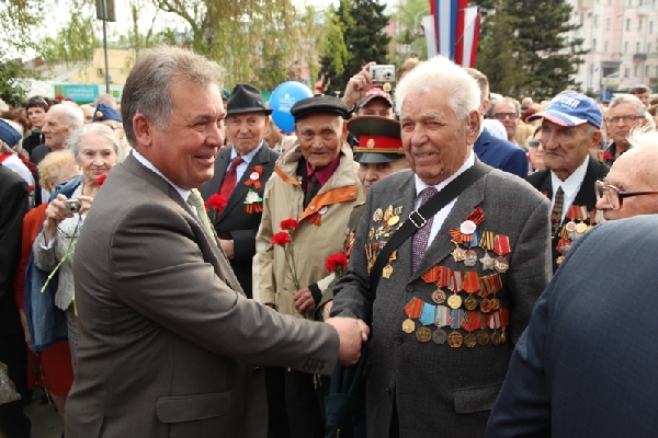 Председатель АКЗС Александр Романенко и Губернатор края Виктор Томенко вместе с главой администрации Барнаула Сергеем Дугиным и председателем городской Думы Галиной Буевич возложили цветы к Монументу славы. В мероприятии также приняли участие депутаты Государственной Думы, краевого парламента, городской Думы, заместители Губернатора, члены ветеранских организаций и общественных объединений. Почетными гостями церемонии стали ветераны-фронтовики.