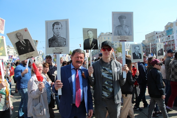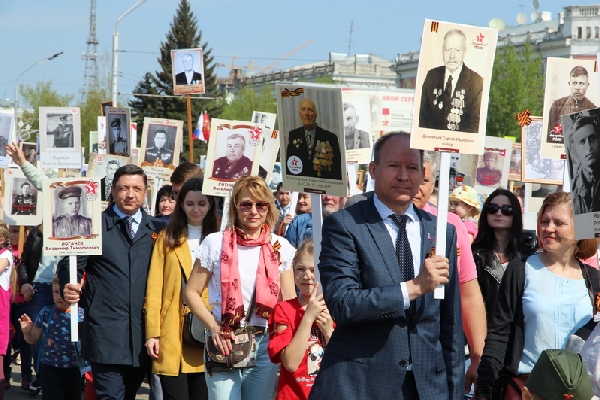 Одним из центральных мероприятий Дня Победы в Барнауле стало шествие «Бессмертного полка» по главной улице краевой столицы. Депутаты Заксобрания во главе с его председателем Александром Романенко тоже прошли в колонне с портретами своих членов семьи.