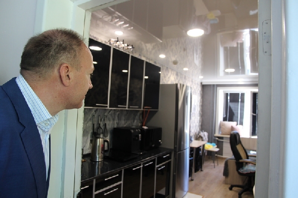 Депутаты побывали в общежитии для сирот, в котором временно живут те, кто дожидается очереди на получение жилья. Оно было создано в 2012 году на базе бывшей гостиницы ТЭЦ и находится на балансе муниципалитета. За этот период здесь успели пожить 158 лиц из числа детей-сирот и детей, оставшихся без попечения родителей, в семьях которых воспитывалось 86 маленьких детей. За время работы общежития квартиры получили 96 человек. Сейчас в общежитии живет 45 человек. Ремонт и благоустройство в общежитии они осуществляют самостоятельно, в том числе с помощью грантовых и спонсорских средств.