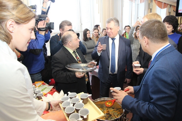Затем глава региона и председатель краевого парламента посетили гастрономическую ярмарку, где свои работы представили Татьяны-студентки технического университета. Здесь же почетные гости вместе с ректором АлтГТУ Андреем Марковым попробовали студенческий сбитень - горячий праздничный напиток, приготовленный с использованием алтайских ягод, меда и трав.